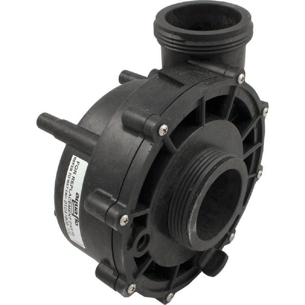 AquaFlo/Gecko Wet End Side discharge, 2"mbt suction/discharge, 48 frame wet end for XP2 pump. This wet end is used with a 1.0hp, 48Y frame, thru-bolt style motor. The motor used may be either a single or dual speed. The wet end may be rotated 90 degrees to change the discharge position. The complete wet end includes: the volute, seal, impeller, wear ring, suction cover, suction cover o-ring, drain plug, drain plug o-ring and suction cover screws. Motor and unions sold separately. Specs: Pump to Motor Foot Types - 9 Motor Frame - 48 Frame Thru-Bolt Drain Plug Location - 4,6,9 o`clock Suction Auxillary Port - None Suction Style - Center Suction Connection (Physical Dimension) - 3-1/16"od Suction Connection Type - Male Buttress Thread (mbt) Suction Pipe Size - 2" Discharge Auxilary Port - None Discharge Style - Side Discharge Connection (Physical Dimension) - 3-1/16"od Discharge Connection Type - Male Buttress Thread (mbt) Discharge Pipe Size - 2" Horsepower - 1.0hp Manufacturer - AquaFlo/Gecko Pump Model - Flo-Master XP2 Manufacturer Impeller Number - 91694110 Volute Fastening Type - 8 Screws Volute/Sealplate Number - 92770705