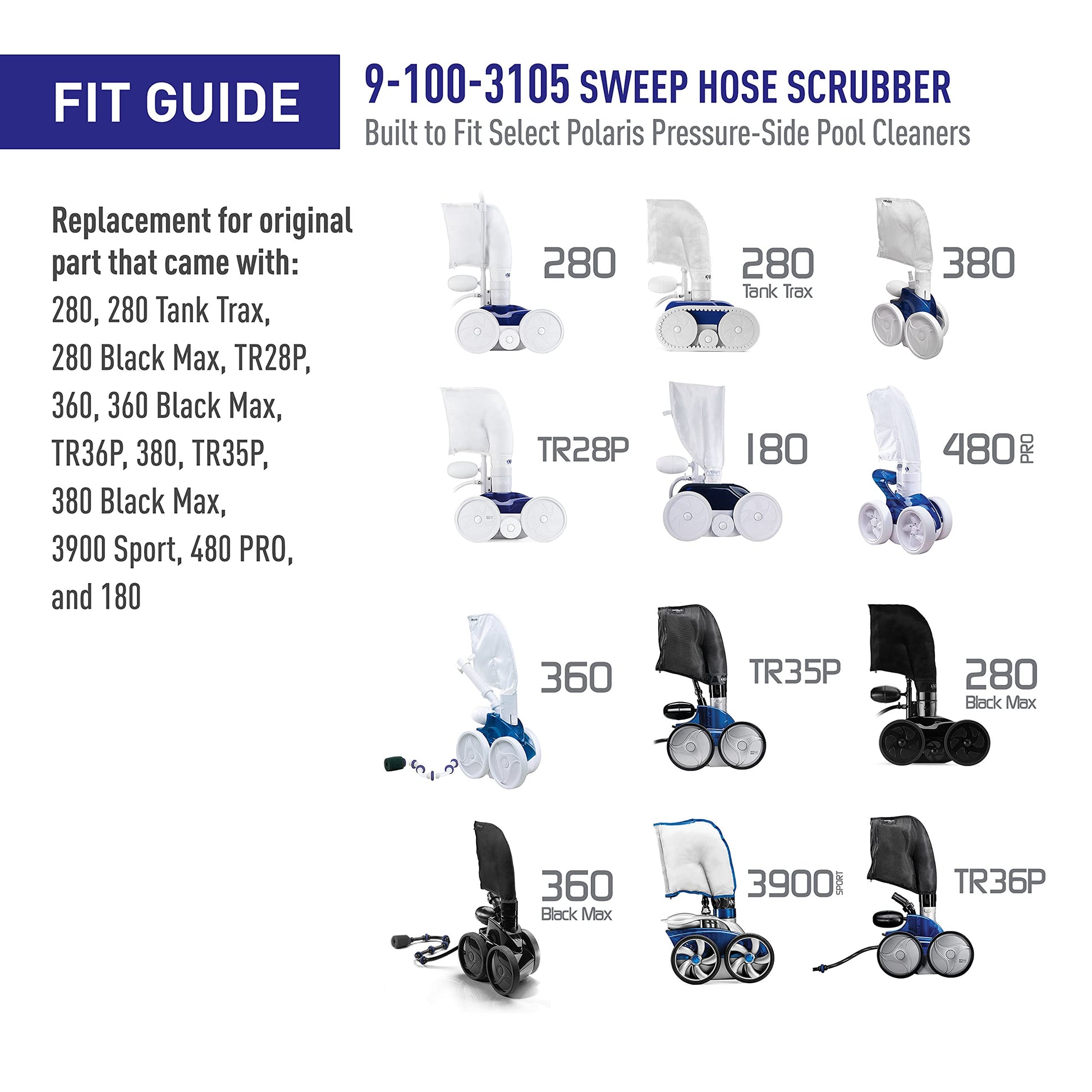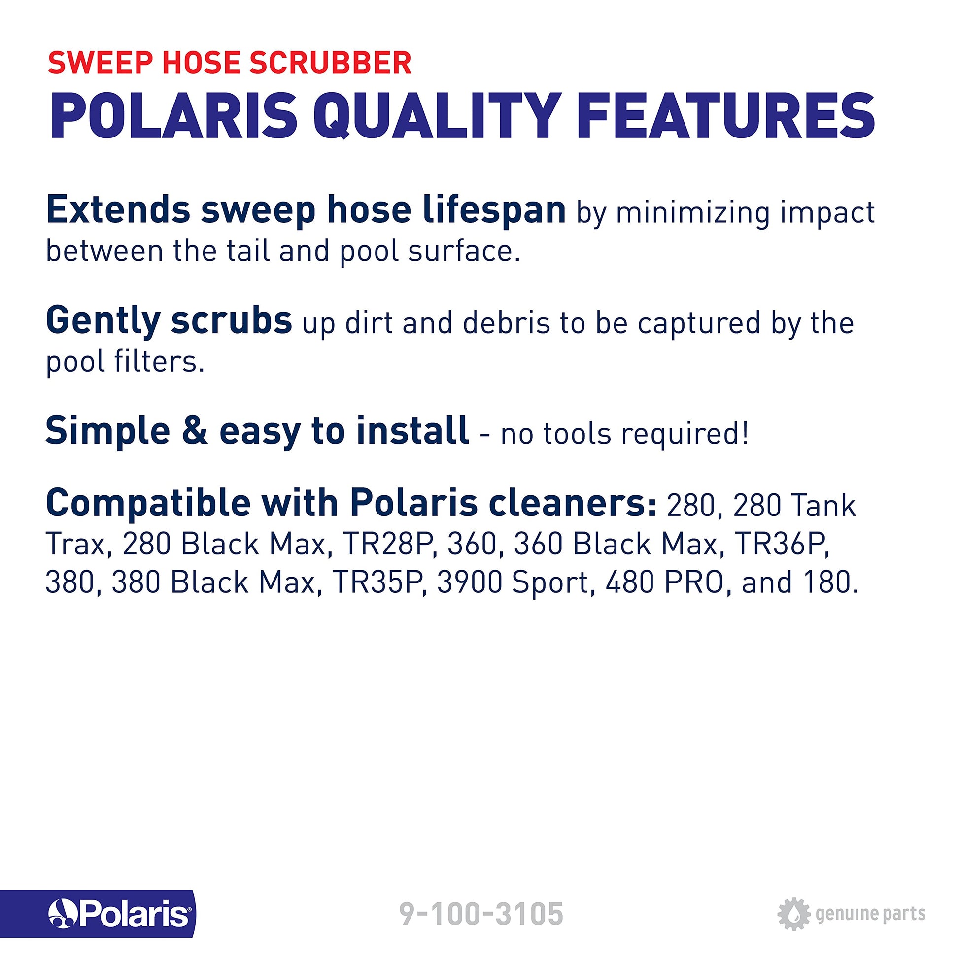 This is the scrubber you put onto your sweep hose to help kick up and scrub some of the debris on the pool floor to make it easier for your cleaner to pick them up. Used on the Polaris 180, 280, 360, 380 and 3900 Cleaners.